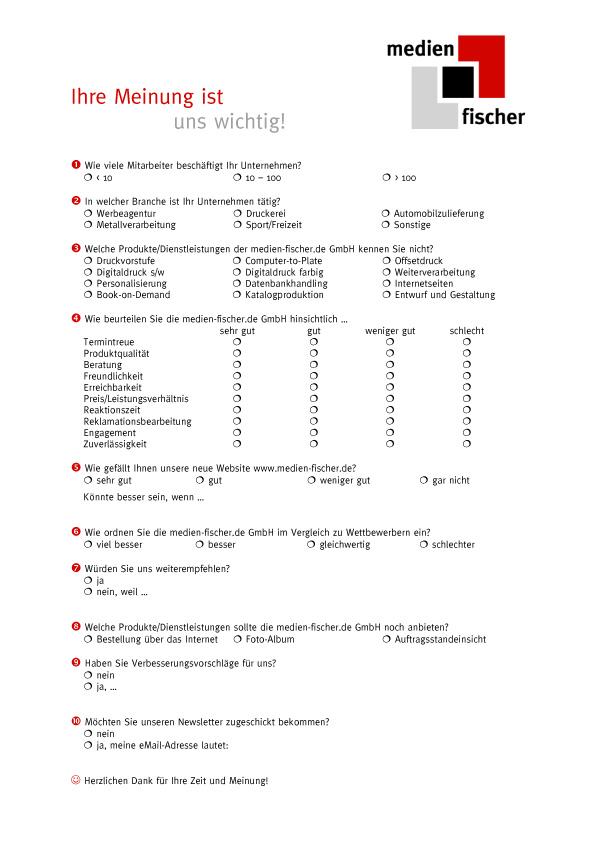Ein herzliches Danke schön an alle Teilnehmer unserer Kundenbefragung. Gefreut haben wir uns über die zahlreiche Teilnahme und überwiegend positive Resonanz. Ihre Verbesserungsvorschläge haben wir mit Interesse gelesen und werden sie als Ansporn nehmen, um uns zu Ihrer Zufriedenheit weiter zu steigern. Sind Sie interessiert, wie Ihre Meinung im Vergleich zu den anderen Kunden gelegen hat, dann werfen Sie einen Blick auf die Zusammenfassung des Fragebogens.